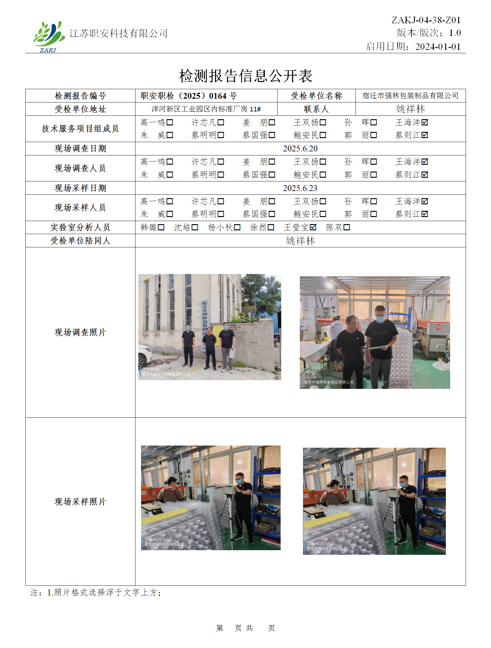 檢測報告公示