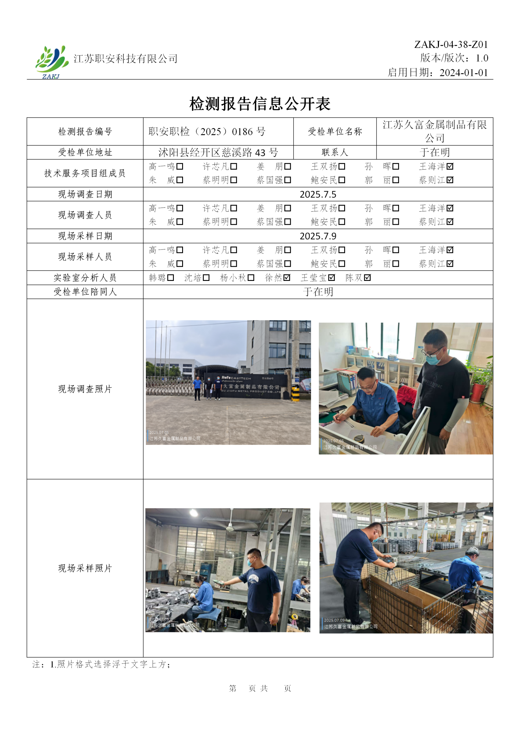 檢測報告公示