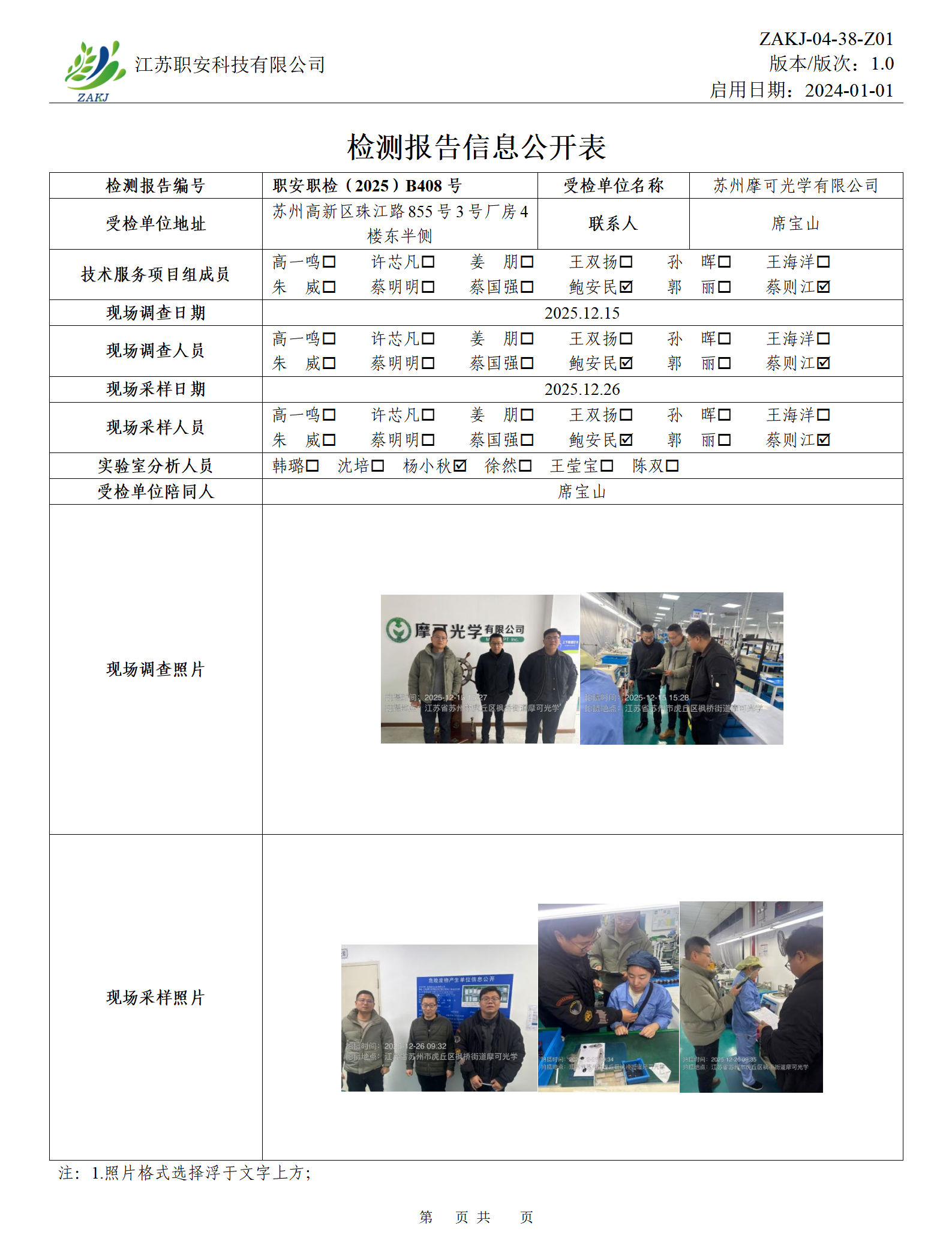 檢測報告公示